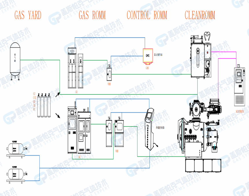 化學品供應系統簡稱CDS,是一個為生產線實現24小時不間斷供應高純度化學品的系統,一般應用于使用量大、POU點位多或者危險性高的化學品。其目的是供應高純度化學品用于芯片表面雜質和微粒子的清洗,芯片圖形的刻蝕,芯片圖形的顯影、芯片的研磨等
